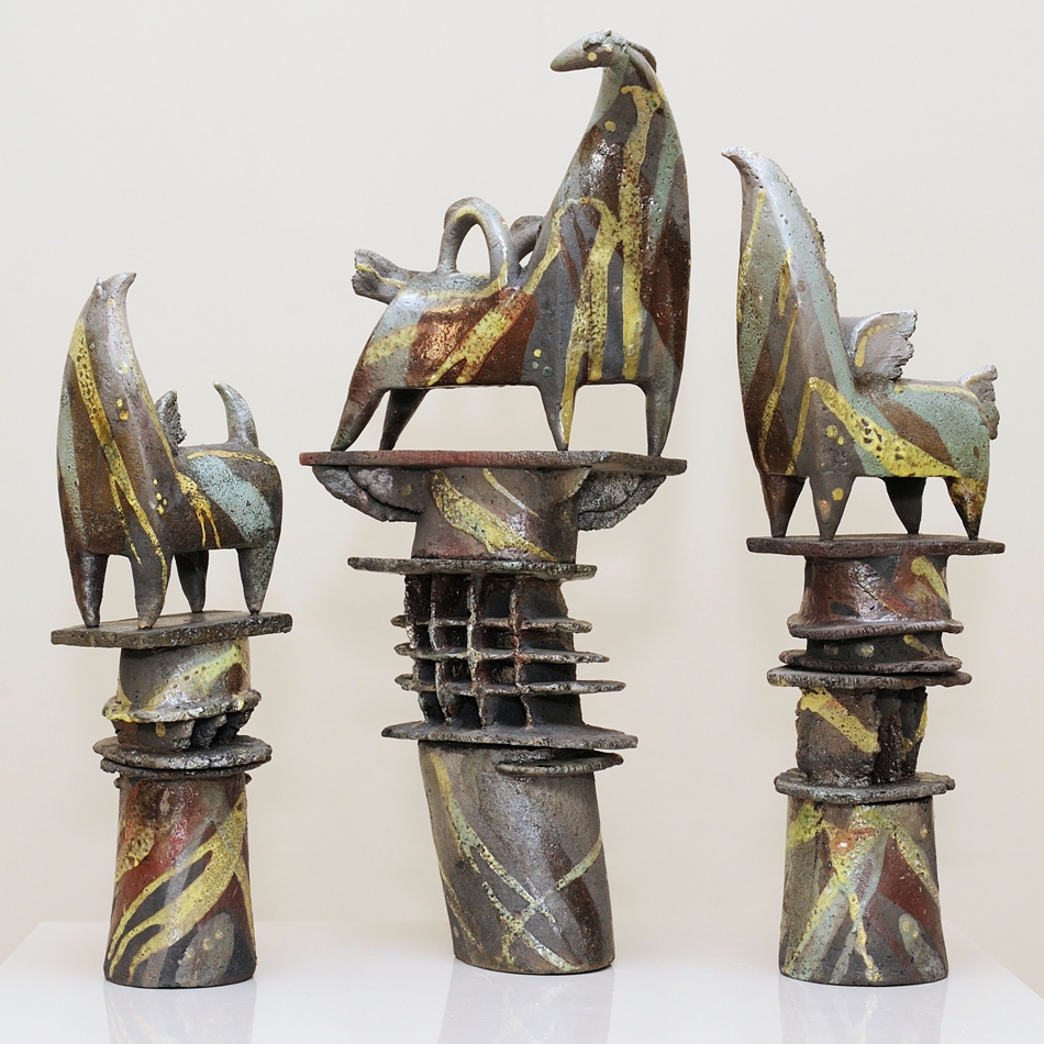 Пегасики 2011г шамот, глазурь выс.56,48,41 см