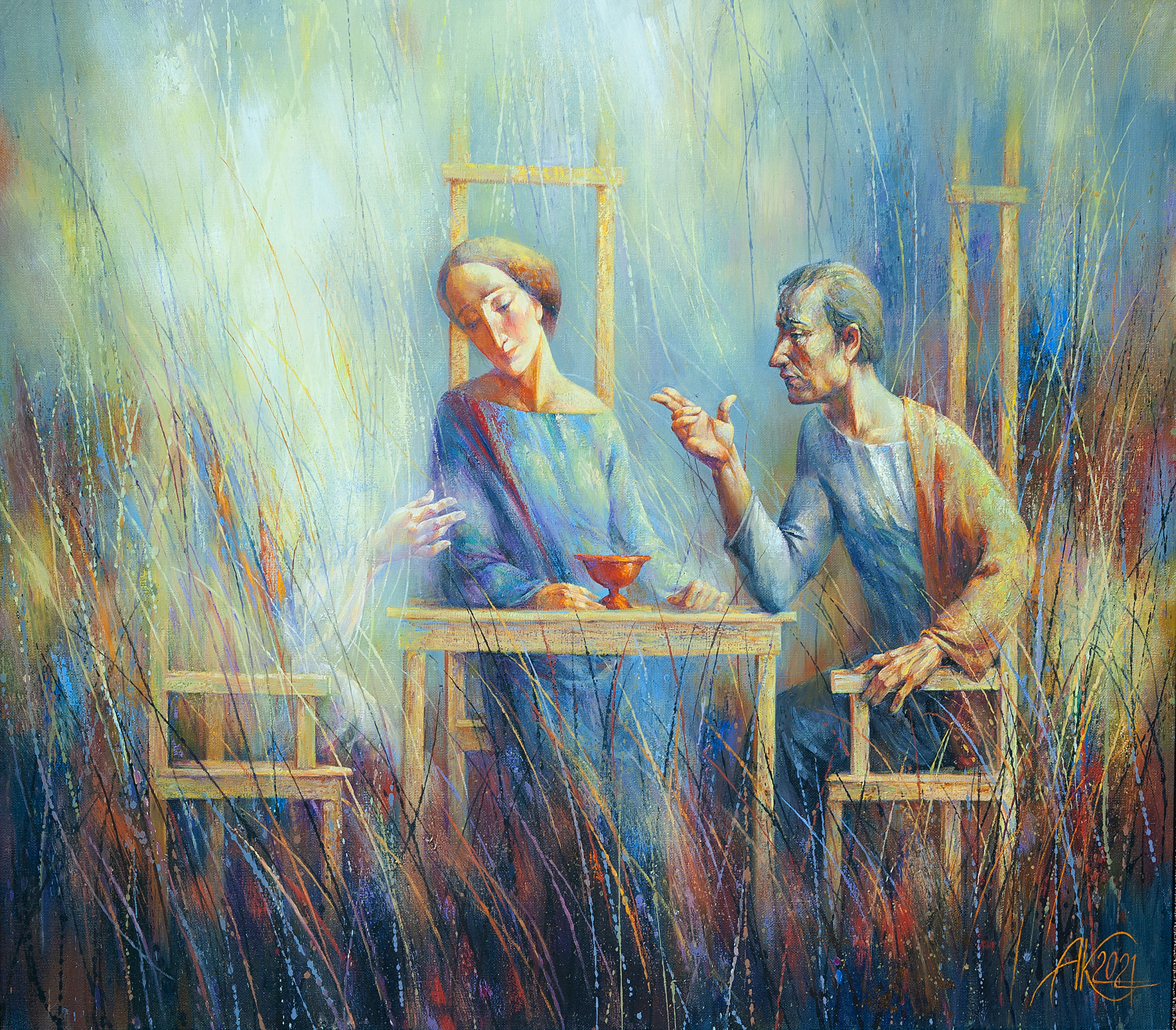 Неоконченный разговор 2021г холст, масло 80х80см