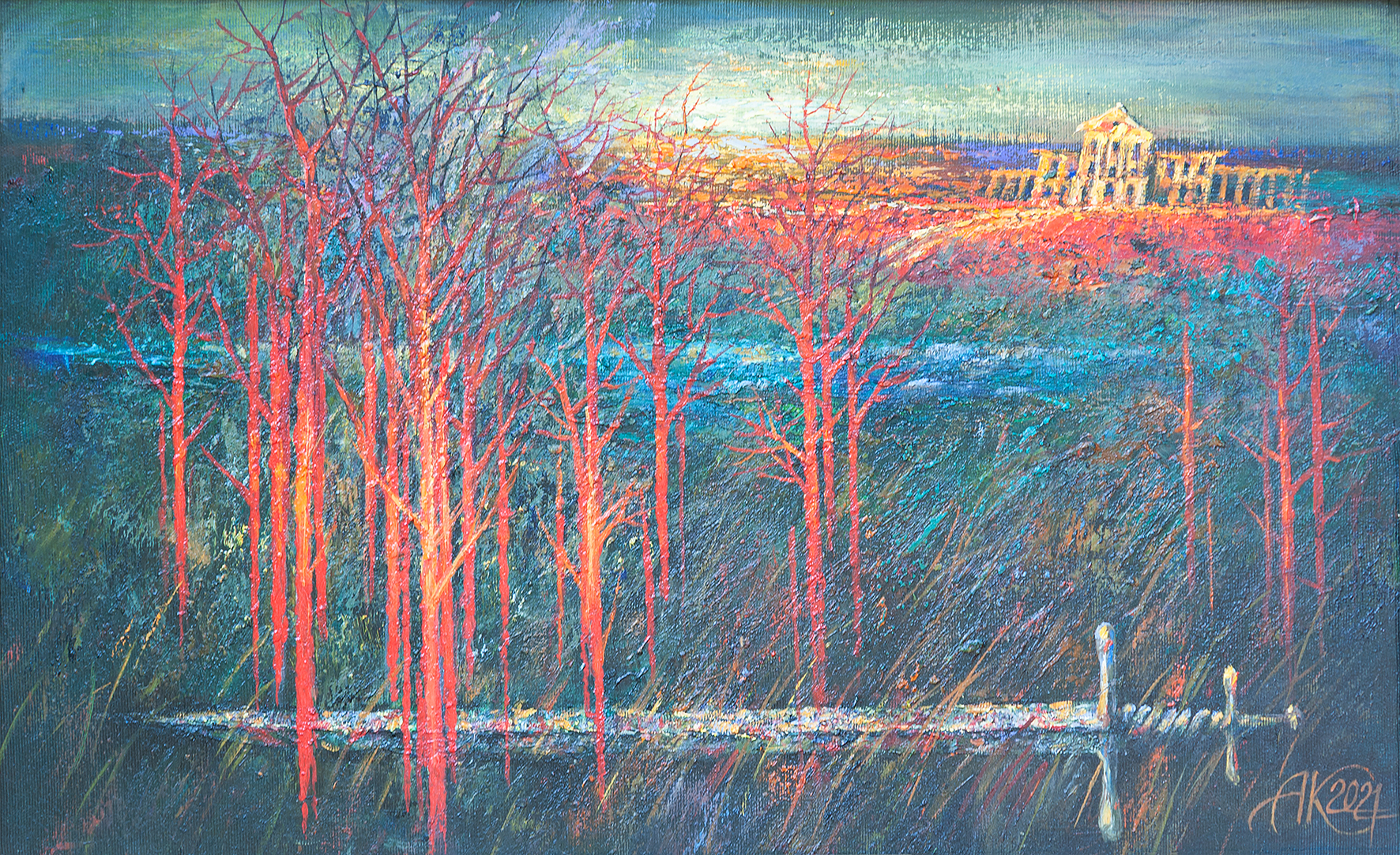 Осенние туманы 2021г холст, масло 90х70см